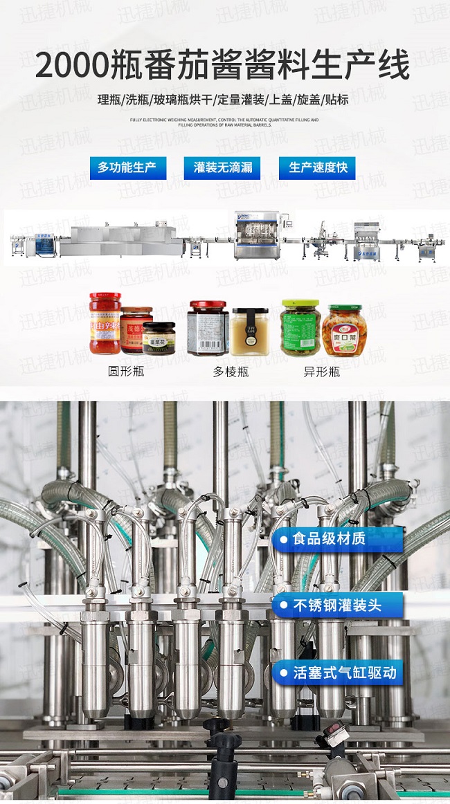 功能齊全,能夠針對不同的產品進行有區(qū)別灌裝的番茄醬灌裝機備316L不銹鋼精制防滴漏灌裝頭,專為番茄醬的灌裝去設計的,通過性好,內外精拋,促進醬料工業(yè)的進步,而醬料工業(yè)的發(fā)展又來作用于番茄醬灌裝機的更新?lián)Q代技術進步,雄厚的經濟技術實力助力與企業(yè)在市場中不斷的升溫不斷進行技術的融合讓番茄醬灌裝機設備在外觀、材質上有著更加美觀的特點,在這個科技發(fā)展的年代,您還有什么理由不去選擇使用番茄醬灌裝機來保護自己的產品呢?